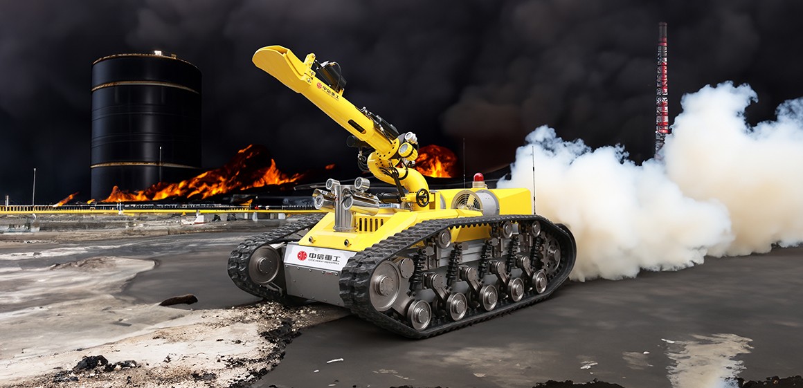 Fire-fighting and scouting robot is mainly composed of robot body, large-flow water monitor, explosion-proof infrared dual-view pan-tilt,